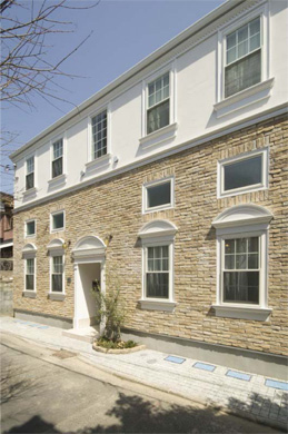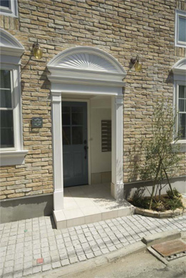 参番館の外観デザインは南フランスの建物を参考にして決めましました。壱番館の外壁には会社に在庫のあったストーンを使ったのですが、参番館ではインターネットで見つけたアンティークブリックをわざわざカナダから輸入して使いました。また、モールディングにも凝りました。参番館はその平面プランが30分で完成したのに対し、外観のデザインと使用する部材の選定には難航しました。何回も外観デザインのラフスケッチをフリーハンドで画き直し、2008年11月に着工する寸前までイメージに合う部材をカタログやネットで探しました。